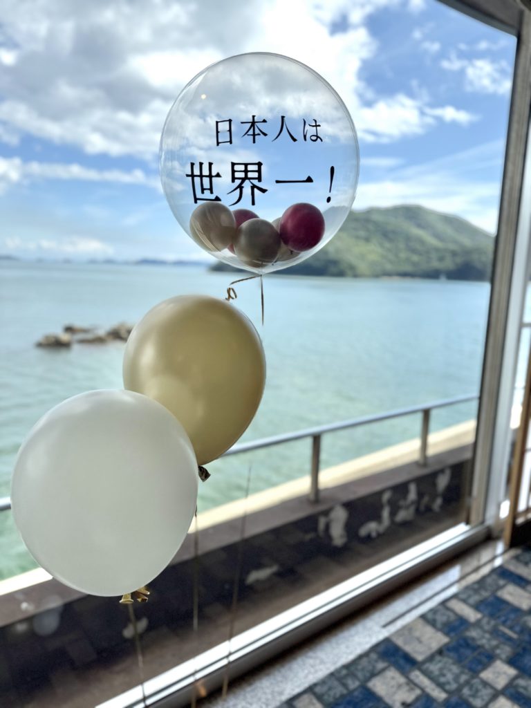 先日、広島県の歴史深い地「鞆の浦」にてクラブハウス番組「日本人は世界一日〜和を以て貴しと為す〜」5周年のリアルイベント装飾をご依頼いただき、出張で伺ってきました。